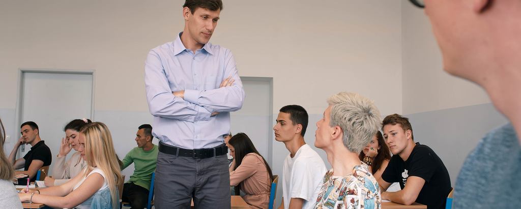 Adam is his class teacher. He is gay who lives in a relationship with his